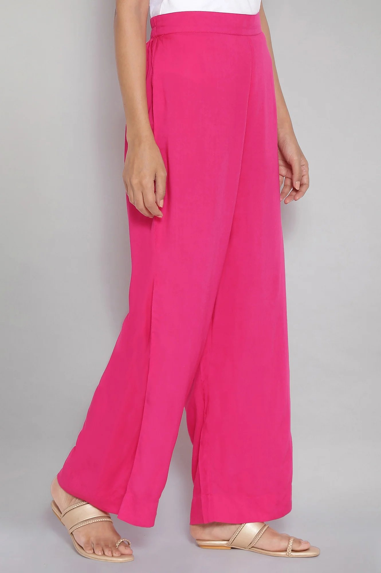 Elegantly crafted with intricate Schiffli embroidery, this lightweight palazzo offers a perfect blend of comfort and style. The silhouette is designed for effortless movement, along with two side pockets, making it a versatile addition to both casual and formal wardrobes. Ideal for adding a touch of traditional charm with modern flair.