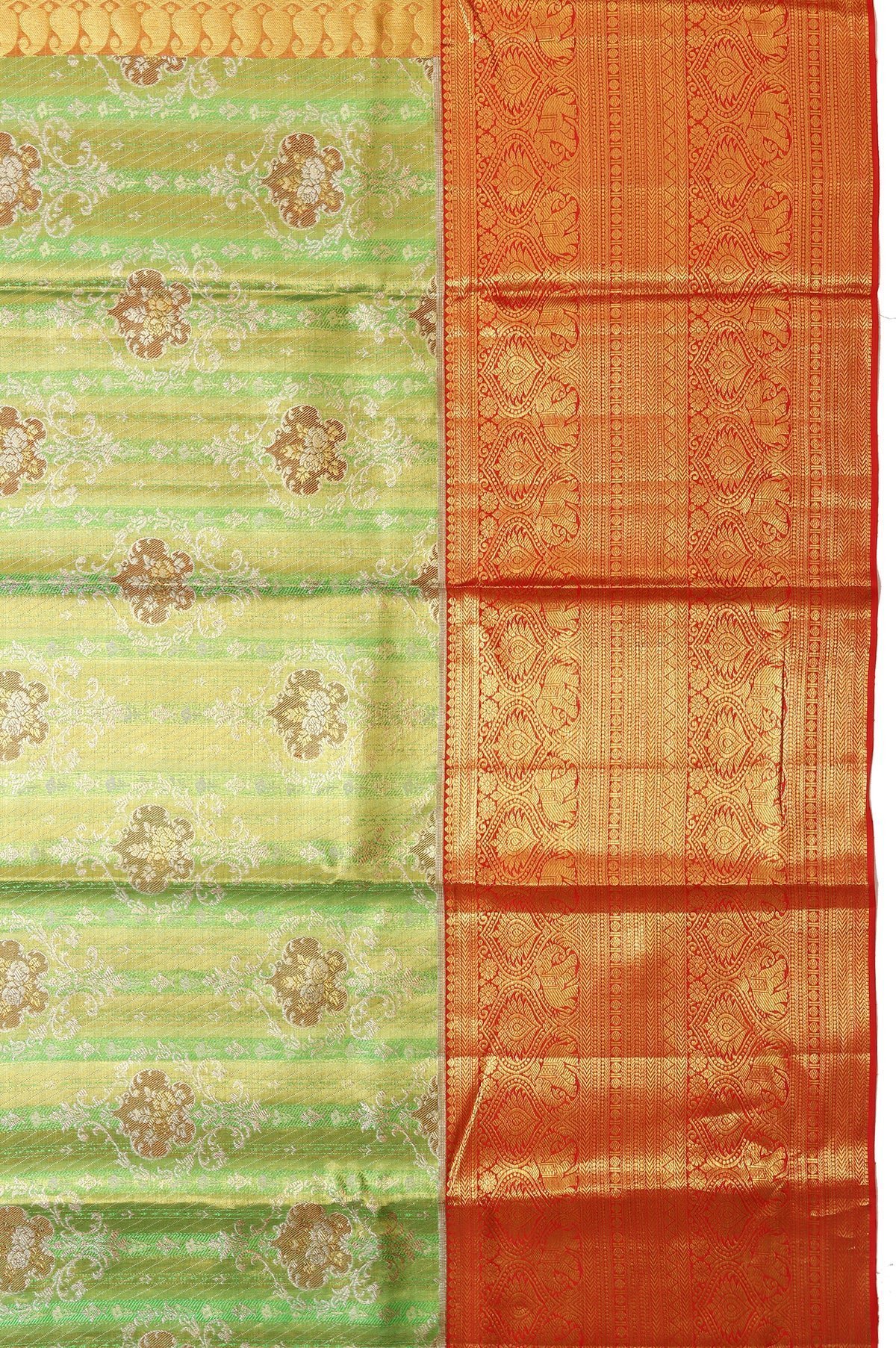 Parrot Green Kanchipuram Tissue Silk Saree