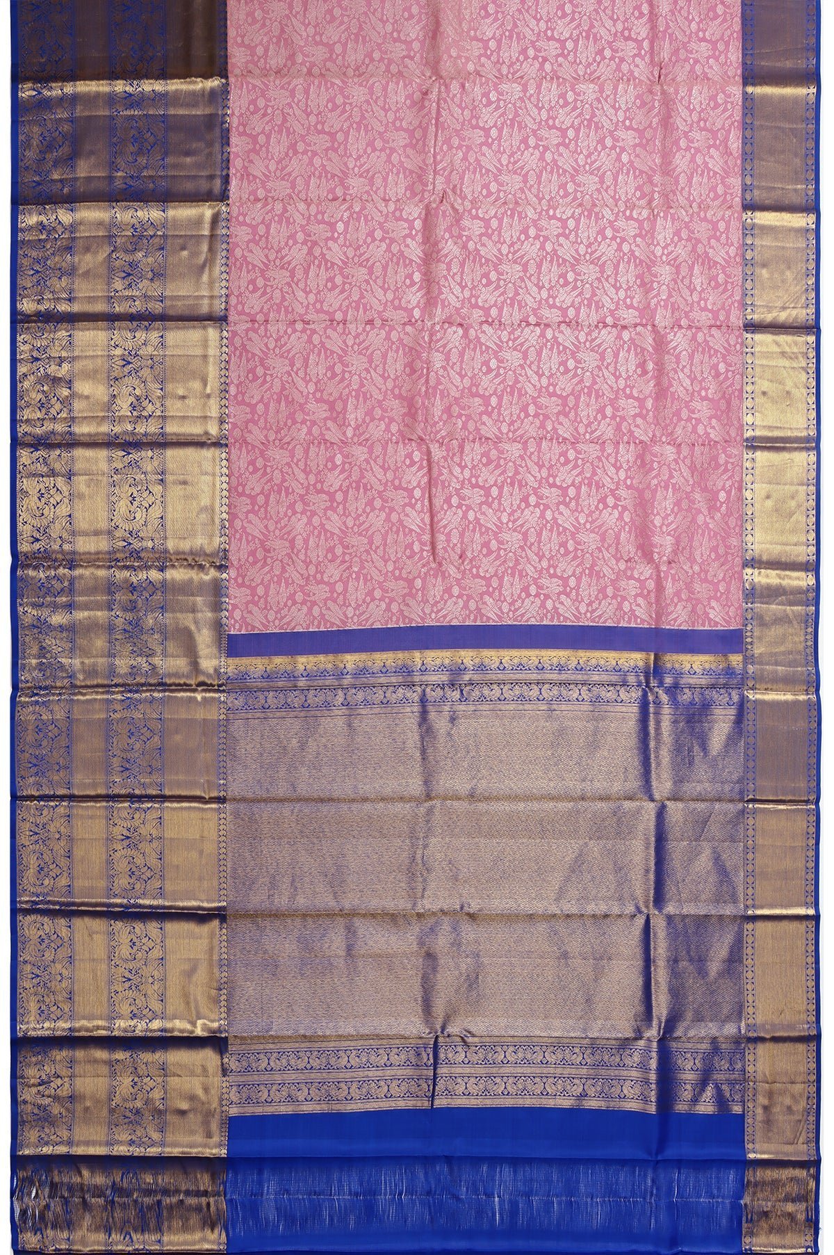 Purple Kanchipuram Silk Saree with Kili, Yanai, and Mayil Motifs